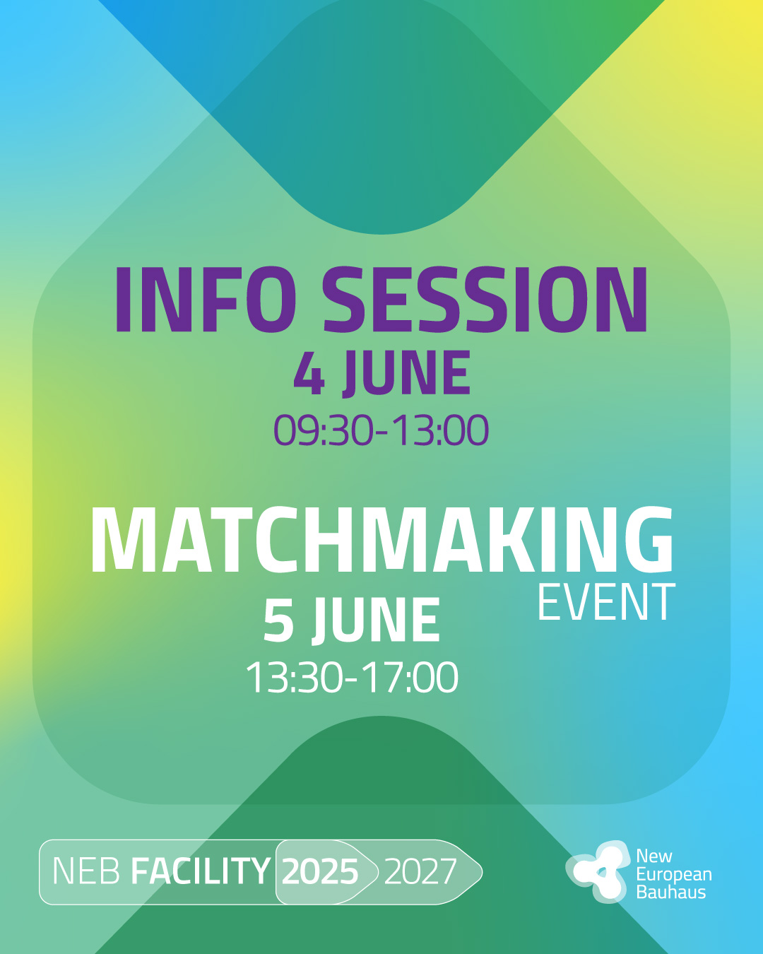Se tratará de un espacio, de unas 4 horas y media de duración, que permitirá el networking y las sinergias entre todos los actores interesados en presentar proyectos a la convocatoria de la NEB Facility. El registro es obligatorio antes del día 1 de junio, y está promovido por la red de los National Contact Point, llamada NEB4ALL.