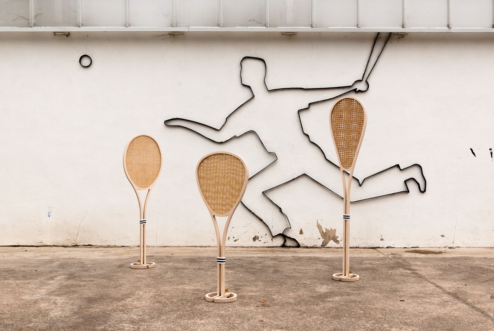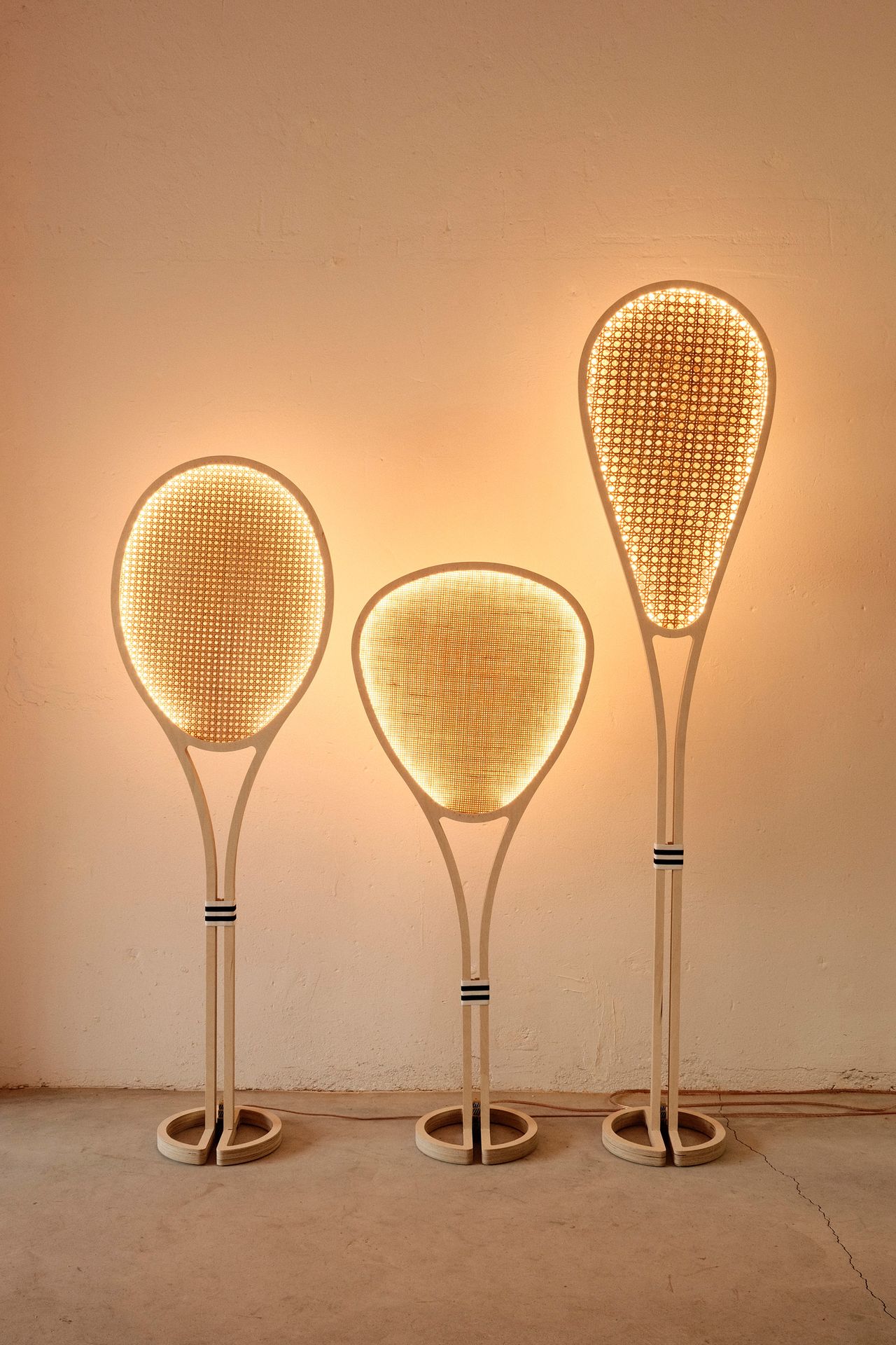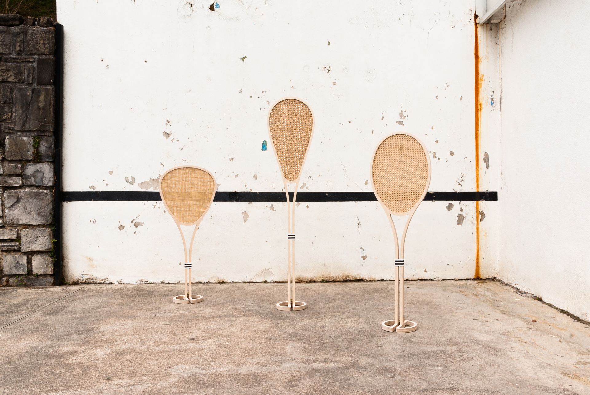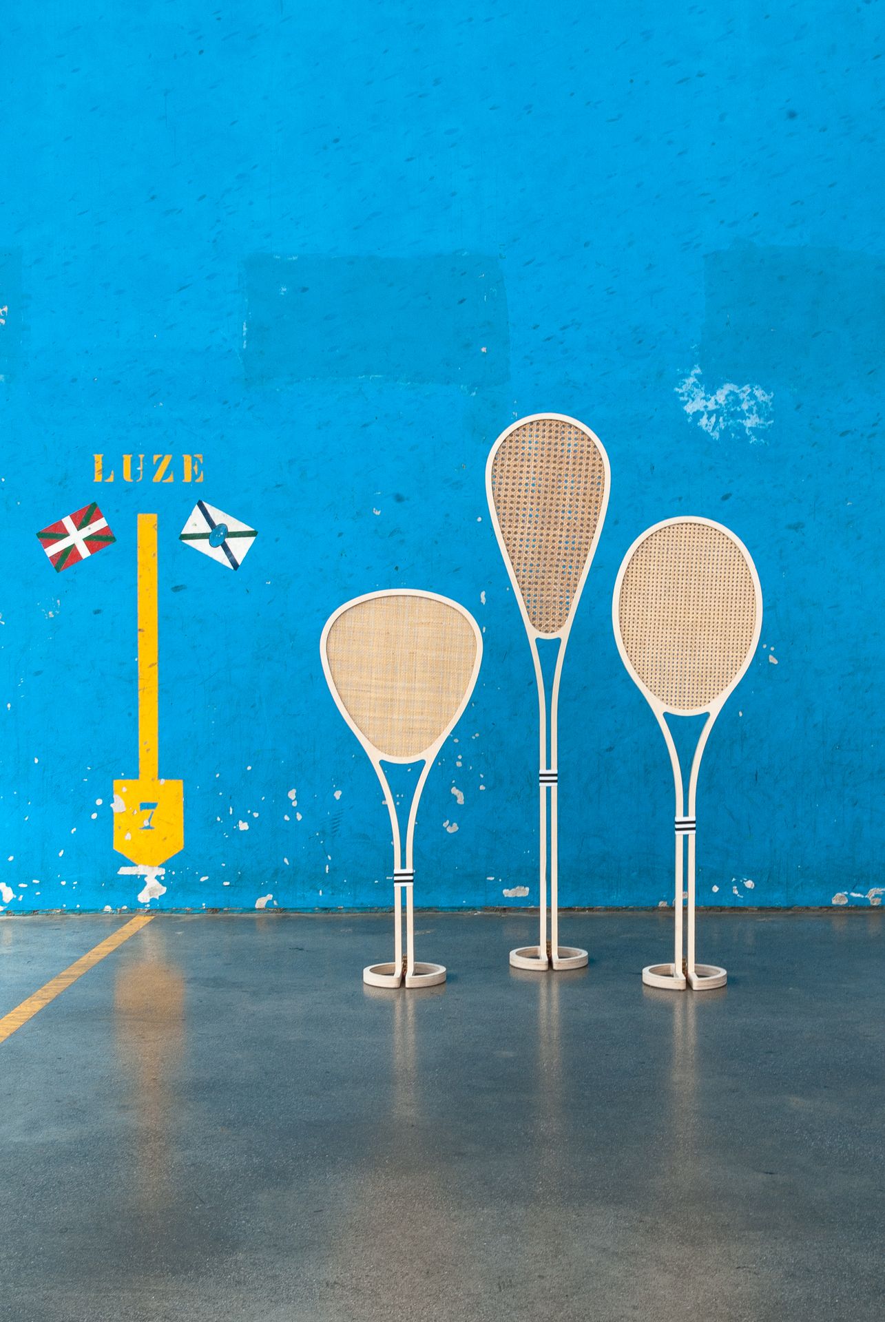 Como homenaje a los deportes de frontón, en especial al xare que se encuentra en riesgo de desaparecer, e inspirados en la tradición y la artesanía local, diseñamos Xare, un conjunto de objetos luminosos compuesto por tres palas de diferentes formas y tamaños.